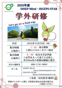 日時:12月25日(木曜日) 8時00分(埼京線南与野駅発) 8時30分(埼玉大学発) ← 予定です